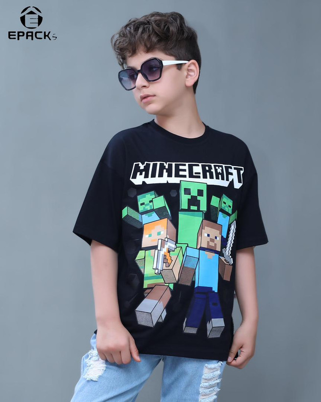 چاپ ماینکرافت در قسمت جلوی تیشرت و پشت ساده